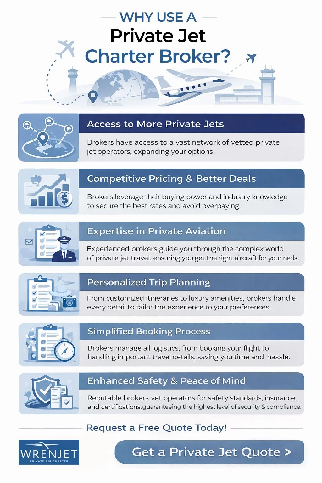 When you’re ready to experience the true benefits of using a private jet charter broker, WrenJet Private Air Charter is your trusted partner in private aviation.